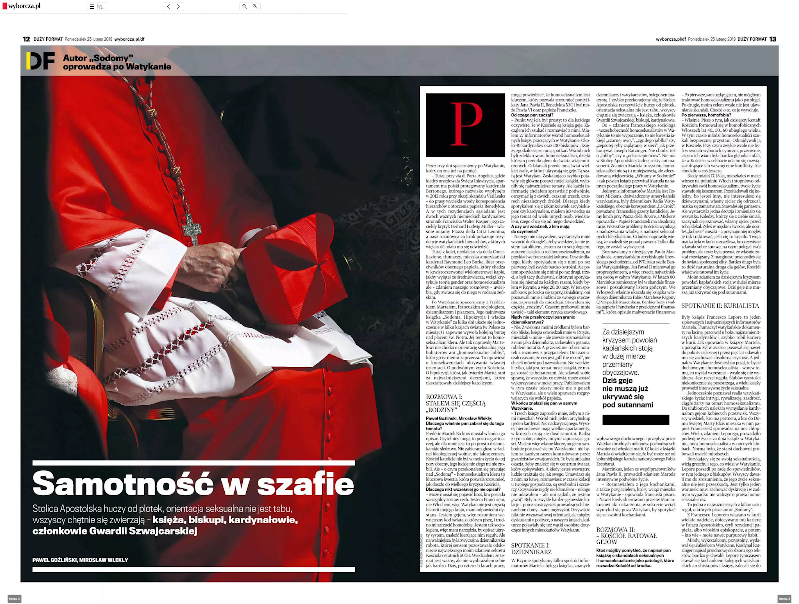 Wyborcza (za pomocą wywiadu z autorem) reklamuje w najnowszym Dużym Formacie książkę Frédérica Martela „Sodoma. Hipokryzja i władza w Watykanie”, która ukaże się wkrótce w Wydawnictwie Agora
